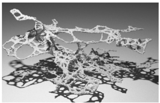 Das Ziel war hierbei jedoch nicht den kürzesten Weg zwischen Nestern und Futterquellen zu finden, sondern den Prozess der „Futtersuche“ darzustellen und die erforschten Wege im Dreidimensionalen Raum sichtbar zu machen.So ähnlich, wenn auch durch Gravitation beschränkt, verhält sich der Schleimpilz Physarum polycephalum, indem er starke und weniger starke Verbindungen zu Nahrungsquellen aufbaut und, falls es sich lohnt, Hindernisse überwindet.